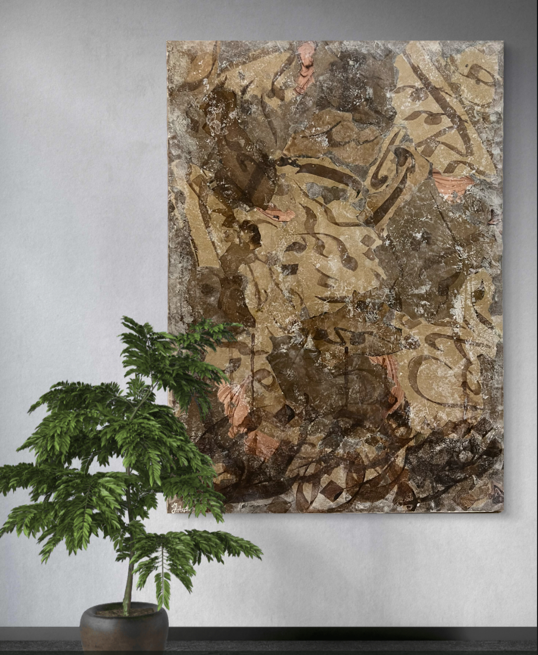 ترکیبی منحصربهفرد از کلاژ، بافت و خوشنویسی معاصر.
