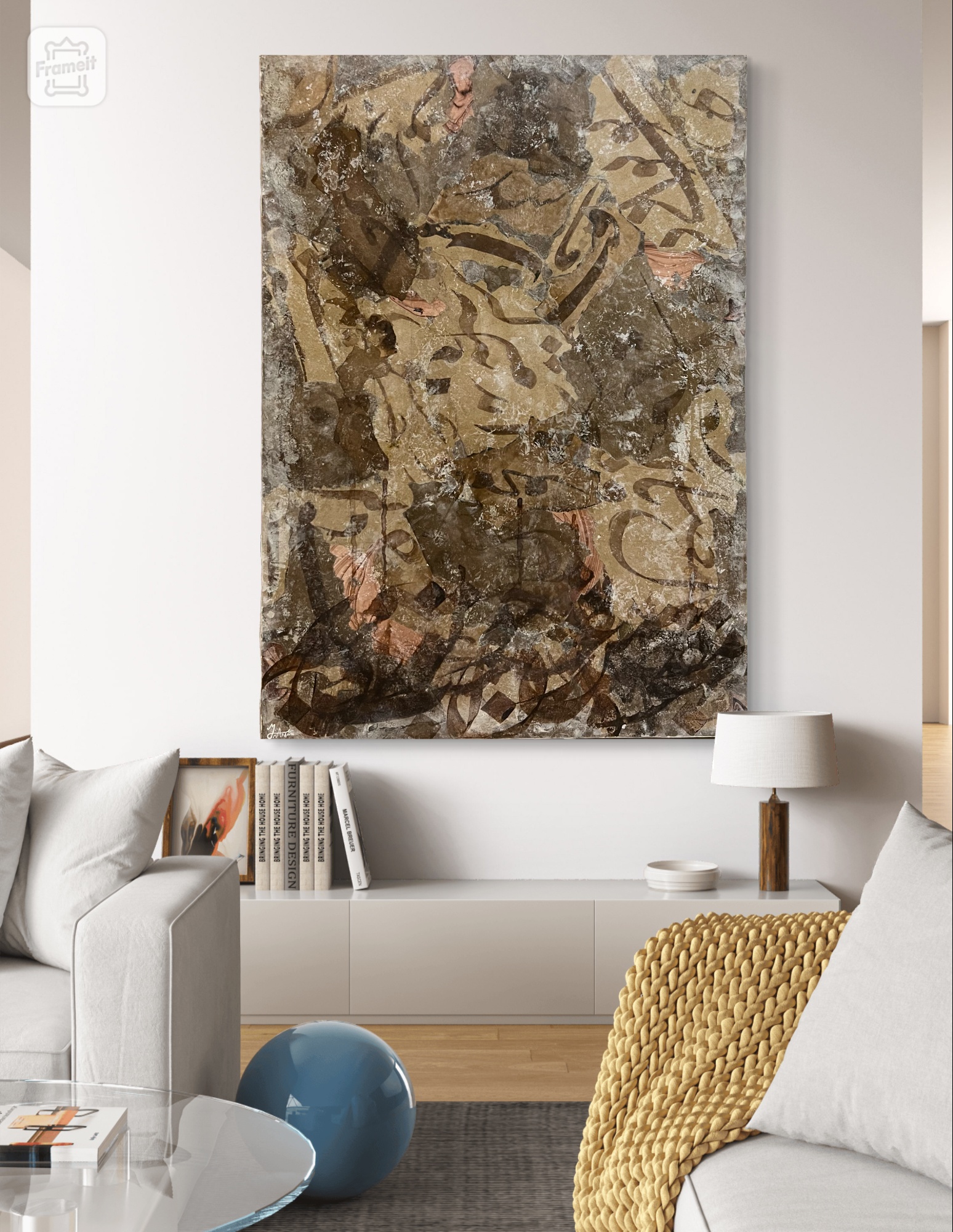 رنگهای خاکی، بافتهای دستی و حس شاعرانهی نوشته، این اثر را به انتخابی متفاوت برای دکورهایی با روح لطیف و معناگرا تبدیل کردهاند.